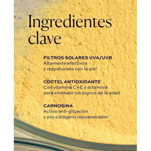 Diseñado para ser coral-friendly, esta fórmula va más allá de la simple protección. Incluye eficaces filtros solares que se combinan con un cóctel de ingredientes hidratantes y antioxidantes para minimizar los signos de la edad y revelar un cutis suave y flexible. Es la solución perfecta para disfrutar del sol sin preocupaciones, sabiendo que tu piel está protegida, firme y respetada.